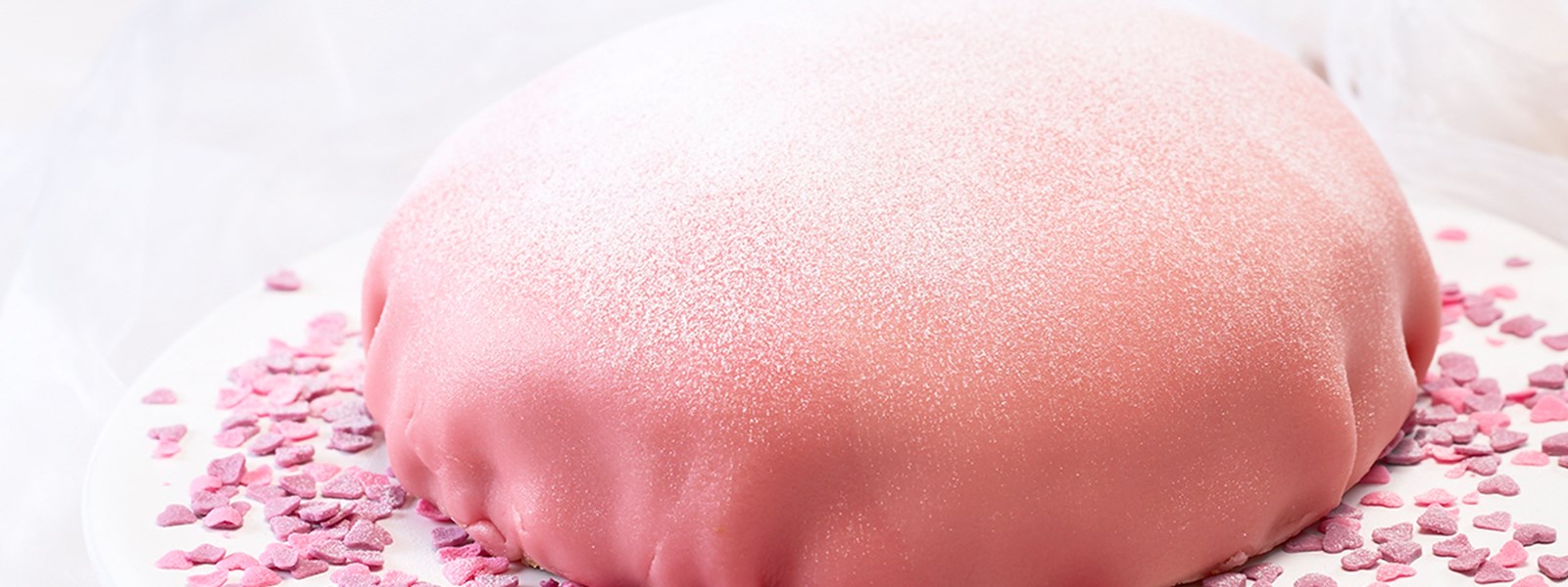 Pehmitä marsipaanista pallo käsissäsi ja tasoita se litteäksi ympyräksi. Kauli marsipaanista kahden muovin välissä ohut, kakun halkaisijan kokoinen ympyrä ja kumoa se alimmaisen muovin avulla kakun päälle. Irrota muovi ja rypytä reuna kauniisti kakun alaosasta. Leikkaa ylimääräinen marsipaani pois terävällä veitsellä.