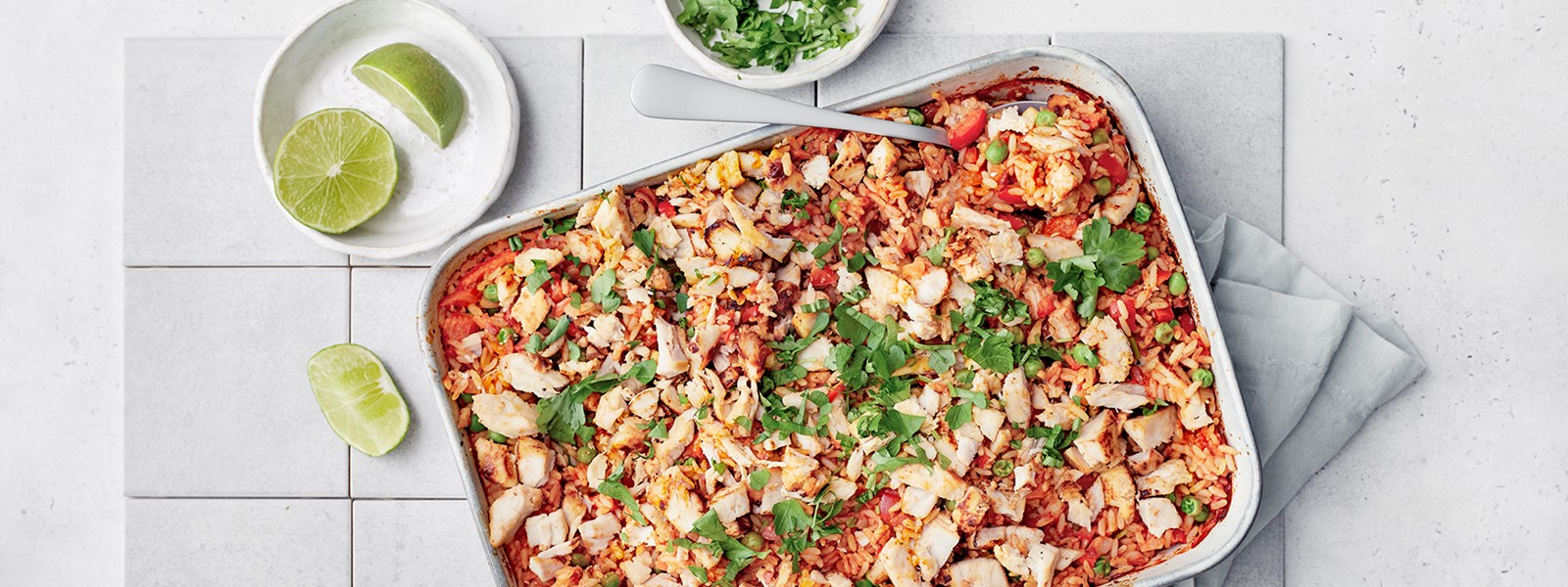 Viimeistele paella lehtipersiljalla ennen tarjoilua.