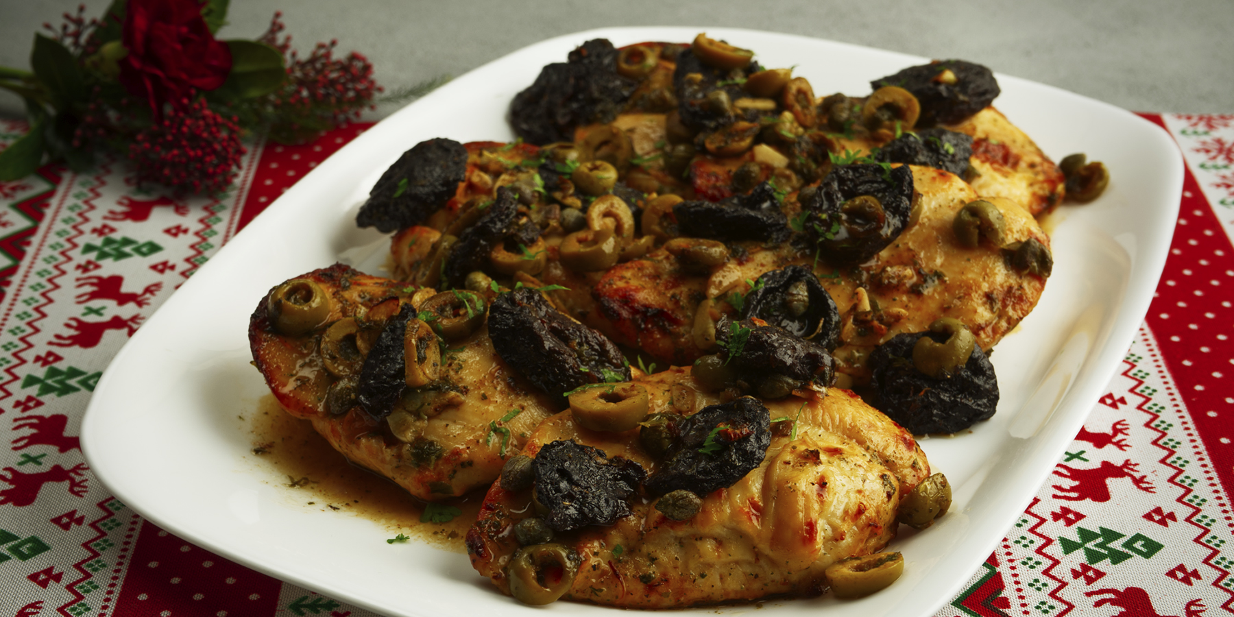 Italiassa usein jouluna syötävä ruoka, johon makua tuovat kuivatut luumut ja vihreät oliivit.