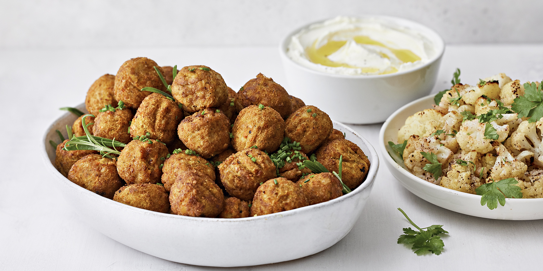 Juures-voipapupyörykät, labneh ja paahdettu kukkakaali