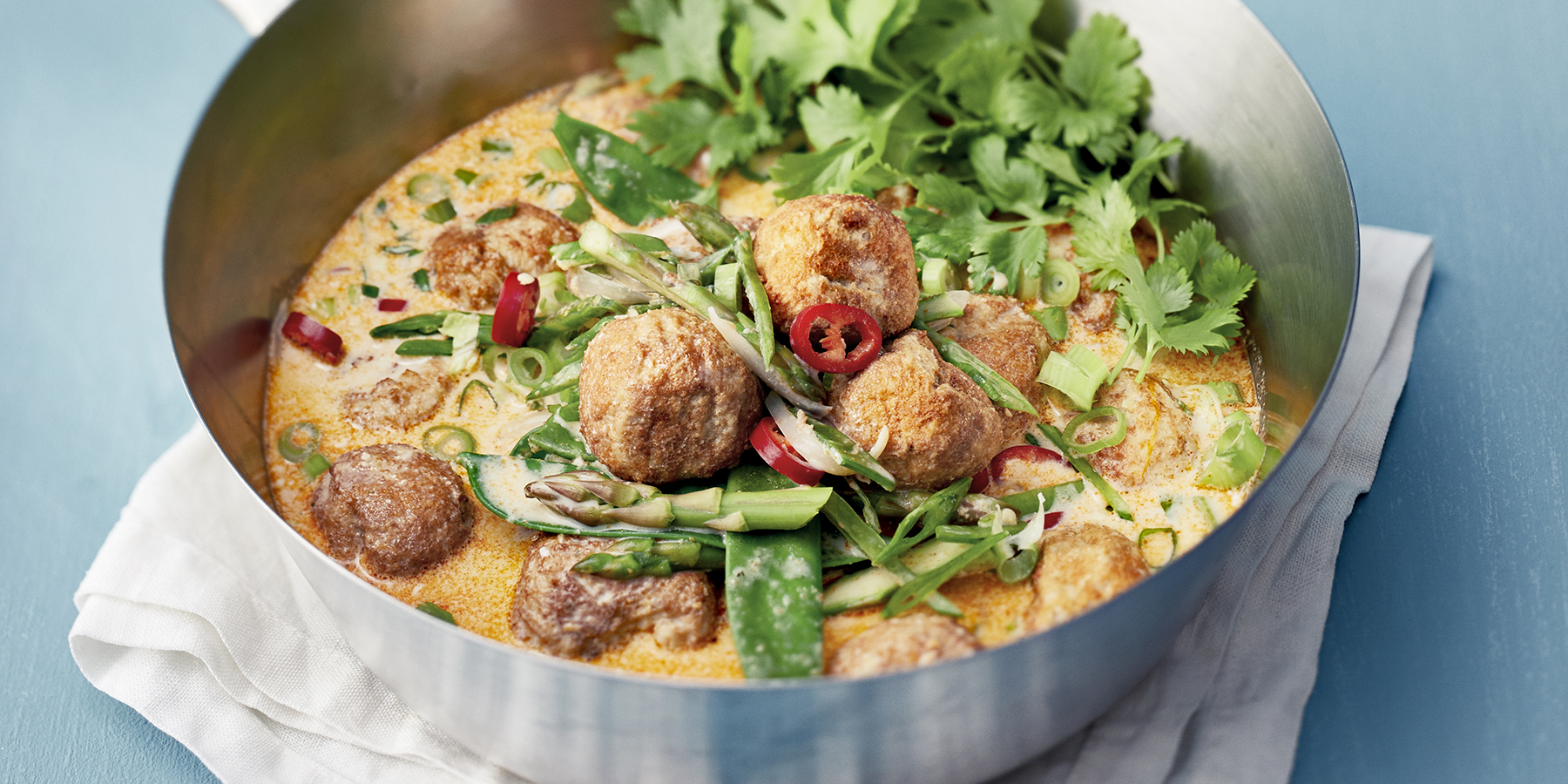 Kalapyörykät punaisessa curry-kookoskastikkeessa