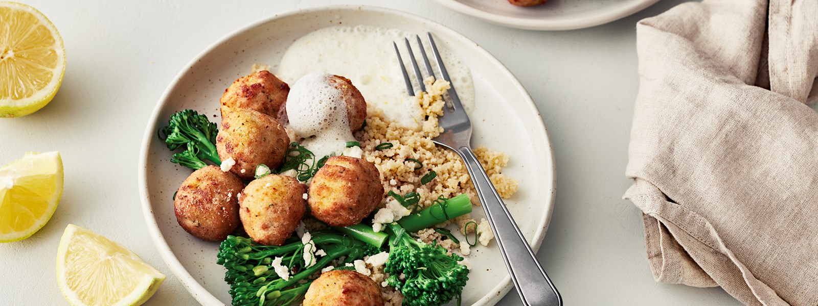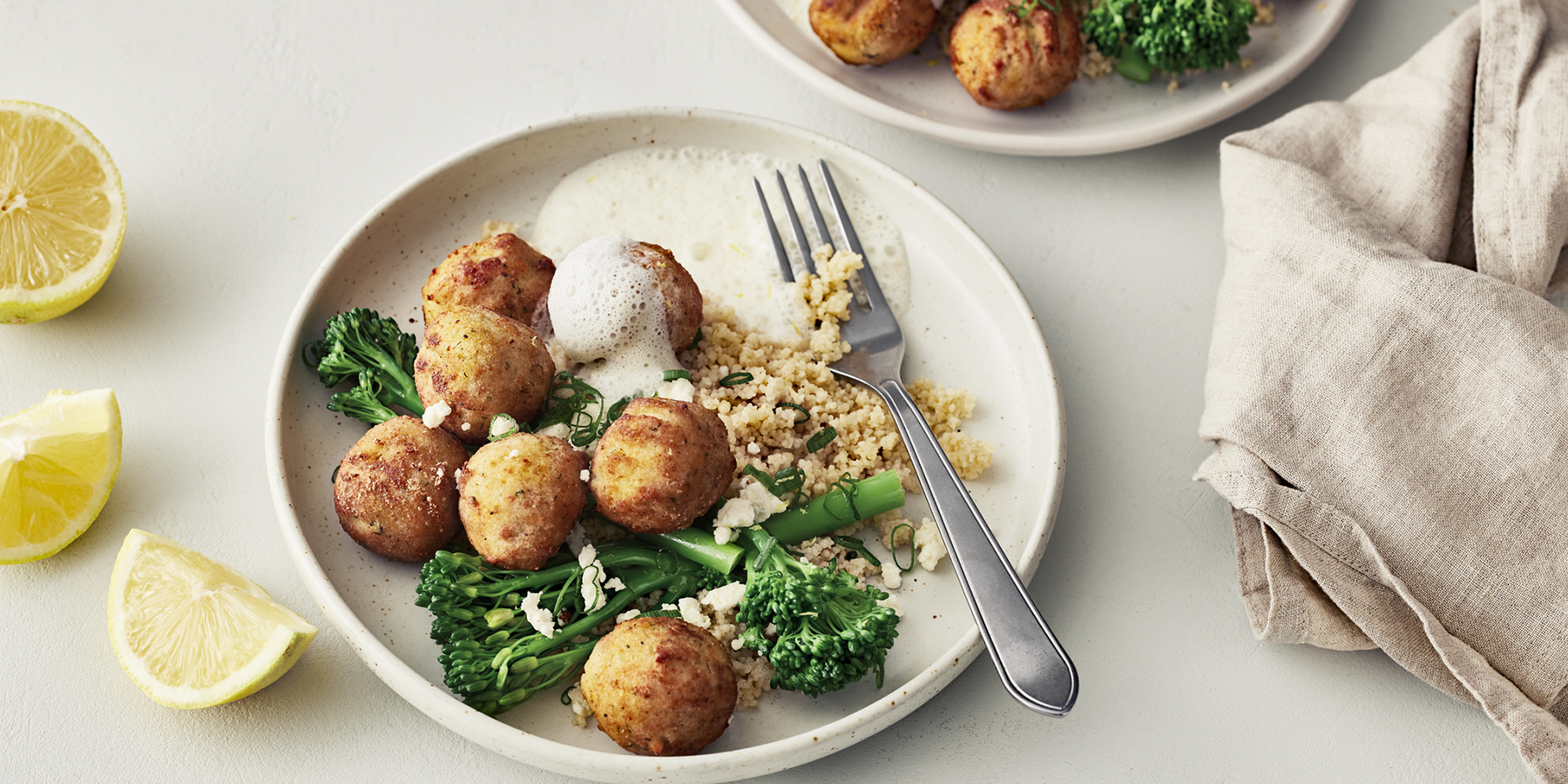 Lahna-kikhernepyöryköitä ja sitruuna-fetakastiketta