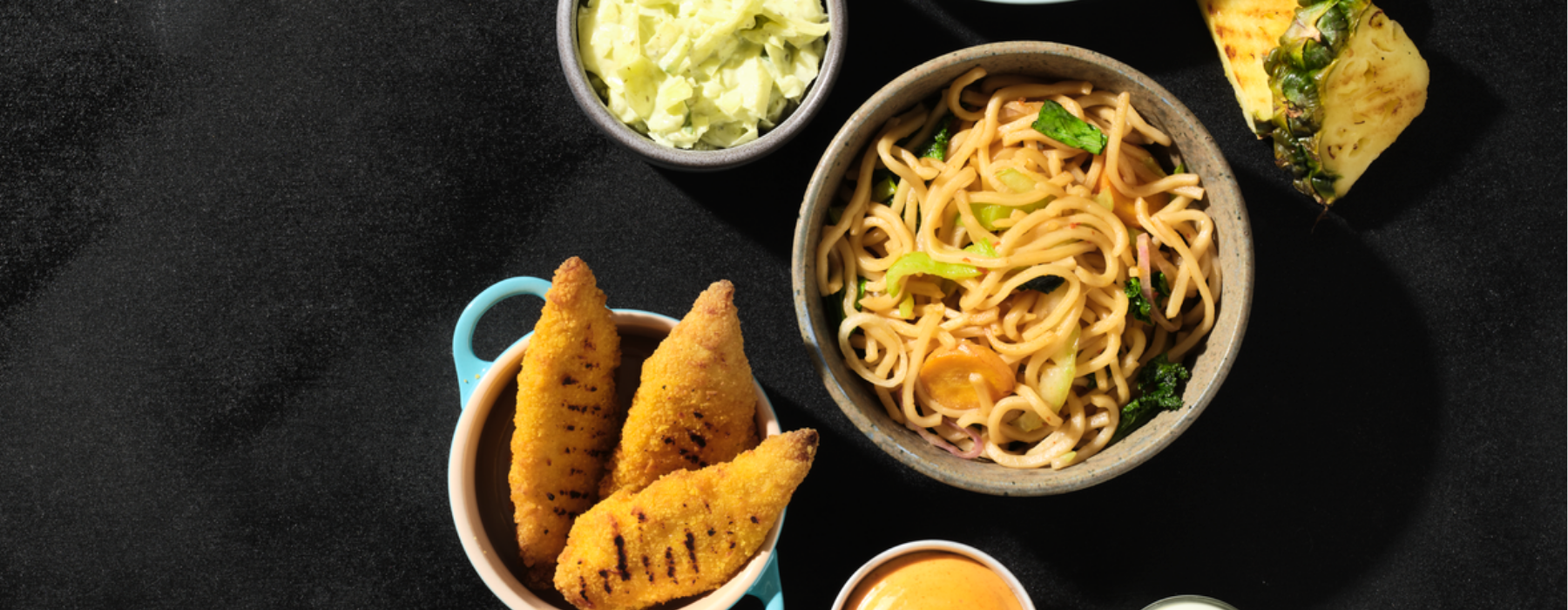 4. Tarjoile nuudeliwokki ja rapeat broilerin fileet Poppamiehen srirachadipin kera.