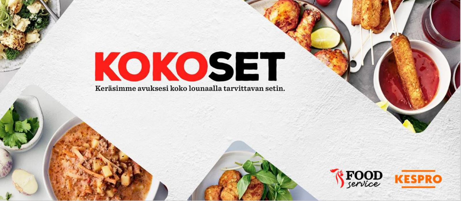 KOKOSET on kahden vahvan toimijan yhteinen valmisruokaratkaisu ammattikeittiöiden arjen helpottamiseksi. Olemme yhdessä Kespron kanssa tehneet valmiit reseptit, joilla on helppo tuottaa pienimmilläkin henkilöresursseilla ravitsemus ja maukkausvaatimukset täyttävä ateria.