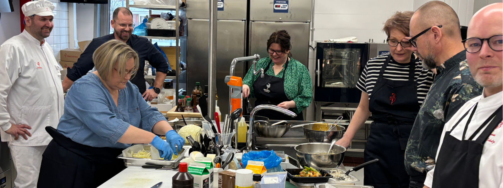 Pannut ja kattilat alkavat löytää paikkojaan ja maustekärryllä käy kuhina. Kymmeniä Saarioisten tuotteita on nostettu esille ja Ykköshankintojen sekä Saarioisten tuotekehityksen käsissä ideat pääsevät toteutukseen.