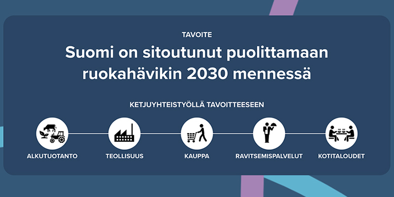 Suomi on asettanut tavoitteen ruokahävikin puolittamisesta vuoteen 2030 mennessä. Sekä ruokahävikkiä että muuta elintarvikejätettä syntyy kaikissa ruokaketjun osissa – molempia eniten kotitalouksissa.
