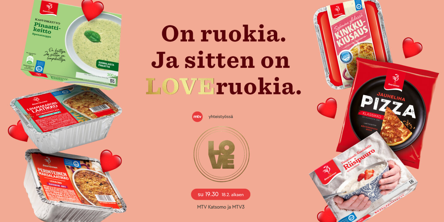 Saarioisten rakastetut klassikot näkyvät LOVE-ohjelman yhteydessä kevään aikana. Ruoan avulla voi välittää rakkautta ja osoittaa toisesta välittämistä, ruoka kokoaa ihmiset yhteen. Saarioisille ruoka ja sen tekeminen on parasta ikinä. Kenen ruokapöytään sinä haluaisit tuoda ripauksen rakkautta?