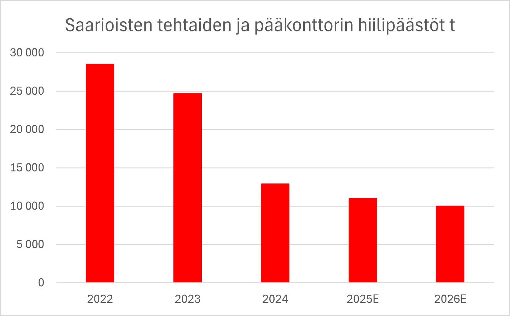 Saarioisten oman toiminnan hiilipäästöt jäivät ennustetusti vuonna 2024 alle 13 000 tonniin. Tämä tarkoittaa lähes 48 % vähenemää vuoteen 2023 verrattuna, jolloin olimme jo vähentäneet päästöjä yli 13 % vuodesta 2022.