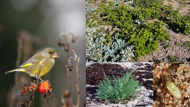 - Viherpeippo syö siemeniä kurtturuusun kiulukoista mantereella.