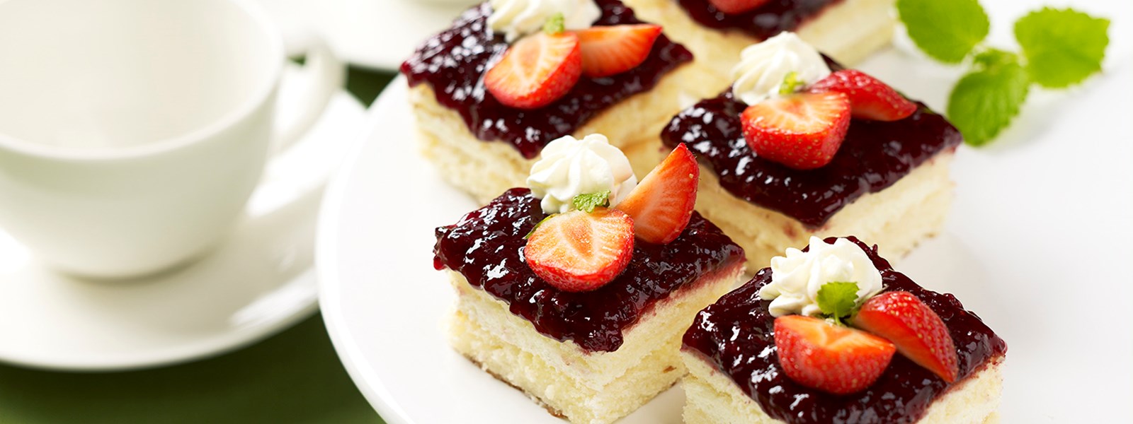 Koristele halutessasi sitruunamelissan lehdillä, kermavaahdolla ja marjoilla.
