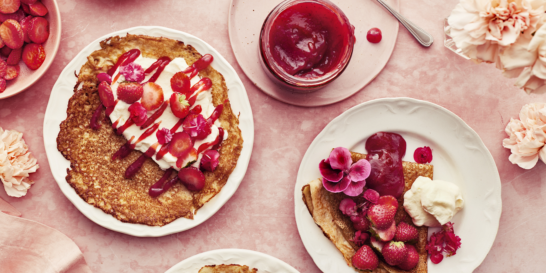Paista letut voissa muurinpohjapannulla ja tarjoa Saarioisten mansikkahillon kera.