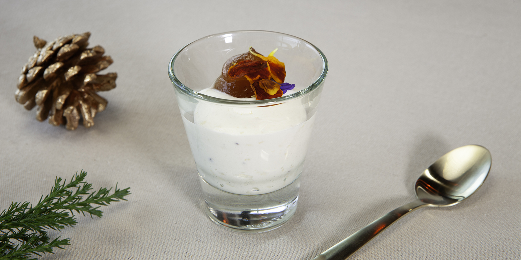 Sekoita kermavaahtoa ja riisipuuroa yhtä paljon kulhoon ja mausta kardemummalla. Annostele riisipuurovanukas lasiin ja lisää lusikallinen omena-kanelimarmeladia päälle.