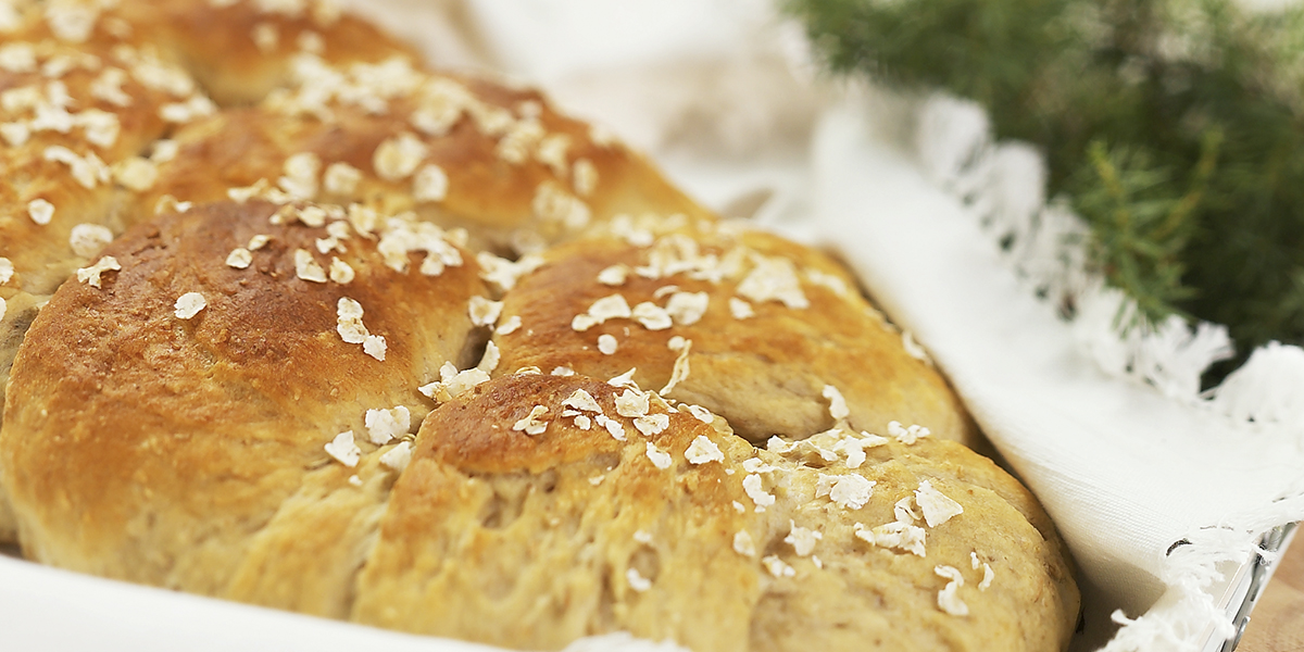 Kaada kohonnut taikina jauhotetulle pöydälle ja jaa taikina kahteen osaan. Leivo taikinapaloista kaksi pitkoa. Kohota leipäpitkoja pellillä 15 minuuttia. Voitele pitkot maidolla ja koristele kaurahiutaleilla juuri ennen paistamista. Paista 200 C.ssa noin 20-30 minuuttia.