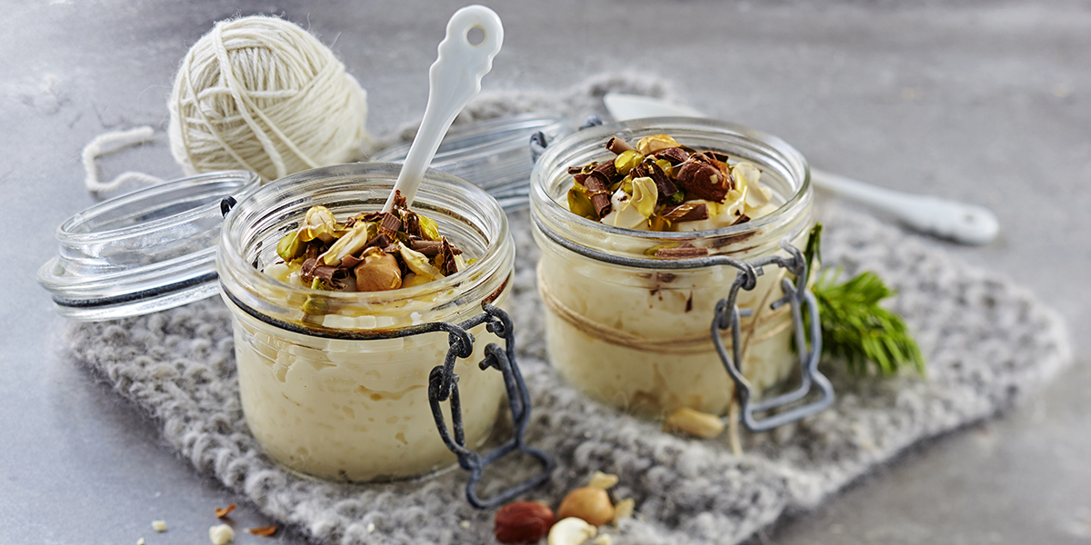 Lämmitä puuro ja jaa neljälle esim. lasipurkkeihin tai annoskulhoon. Rouhi pähkinät ja suklaa, jaa puurojen pinnalle. Valuta lopuksi juoksevaa hunajaa päälle.