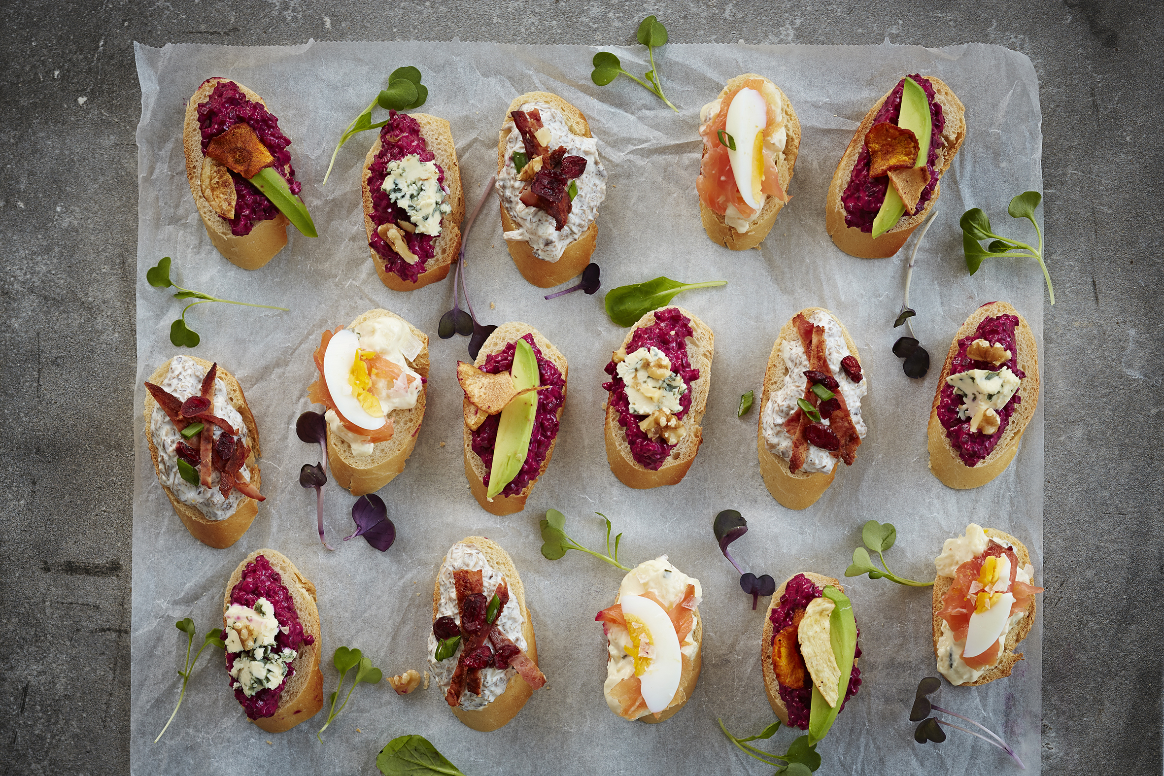Valmista helposti näyttävän värikäs leipätarjoilu arkeen tai juhlaan. 16 kpl