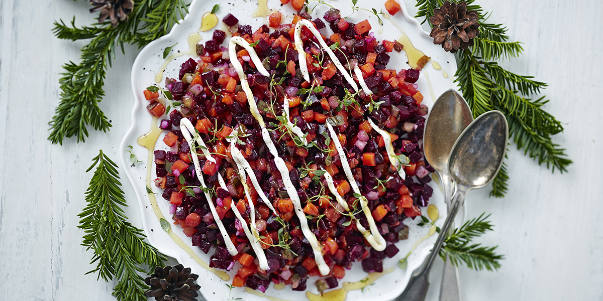 Sekoita rosolli ja laita tarjolle laakeaan astiaan. Valuta smetanaa ja juoksevaa hunajaa rosollin pintaan. Viimeistele ja koristele tuoreella timjamilla sekä rouhitulla mustapippurilla.