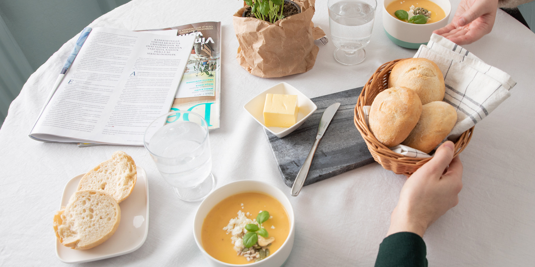 Kaksinverroin hyvää tuunaamalla. Herkullinen lounashetki syntyy tuunaamalla Saarioisten Bataattikeitto oman maun mukaan. Lämmitä Bataattisosekeitto pakkauksen mukaan. Valitse mieluisimmat ripotteet ja nauti esimerkiksi tuoreiden sämpylöiden kanssa.