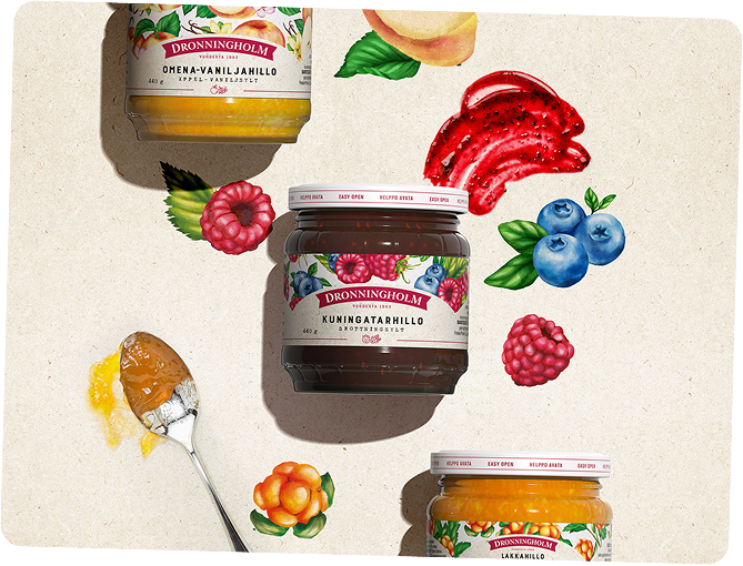 Dronningholm on markkinoiden mieluisin hillo- ja marmeladimerkki (Saarioisten internet-tutkimus 2019, n=1015). Tunnemme suomalaisten suosikkimaut ja haluamme olla mukana suomalaisten arjessa ja juhlahetkissä. Vaalimme pidettyjä klassikkomakuja, samalla uutta kehittäen. Dronningholm perinteikkäänä brändinä edustaa aitoa ja laadukasta marjaisaa makua. Dronningholmin herkulliset hillot ja marmeladit sopivat erityisesti makeannälkään ja muuhun herkutteluun sekä leivontaan. Syksyn ja joulun leivontahetkiin sopivat suositut, paistonkestävät Tähtitorttumarmeladit.