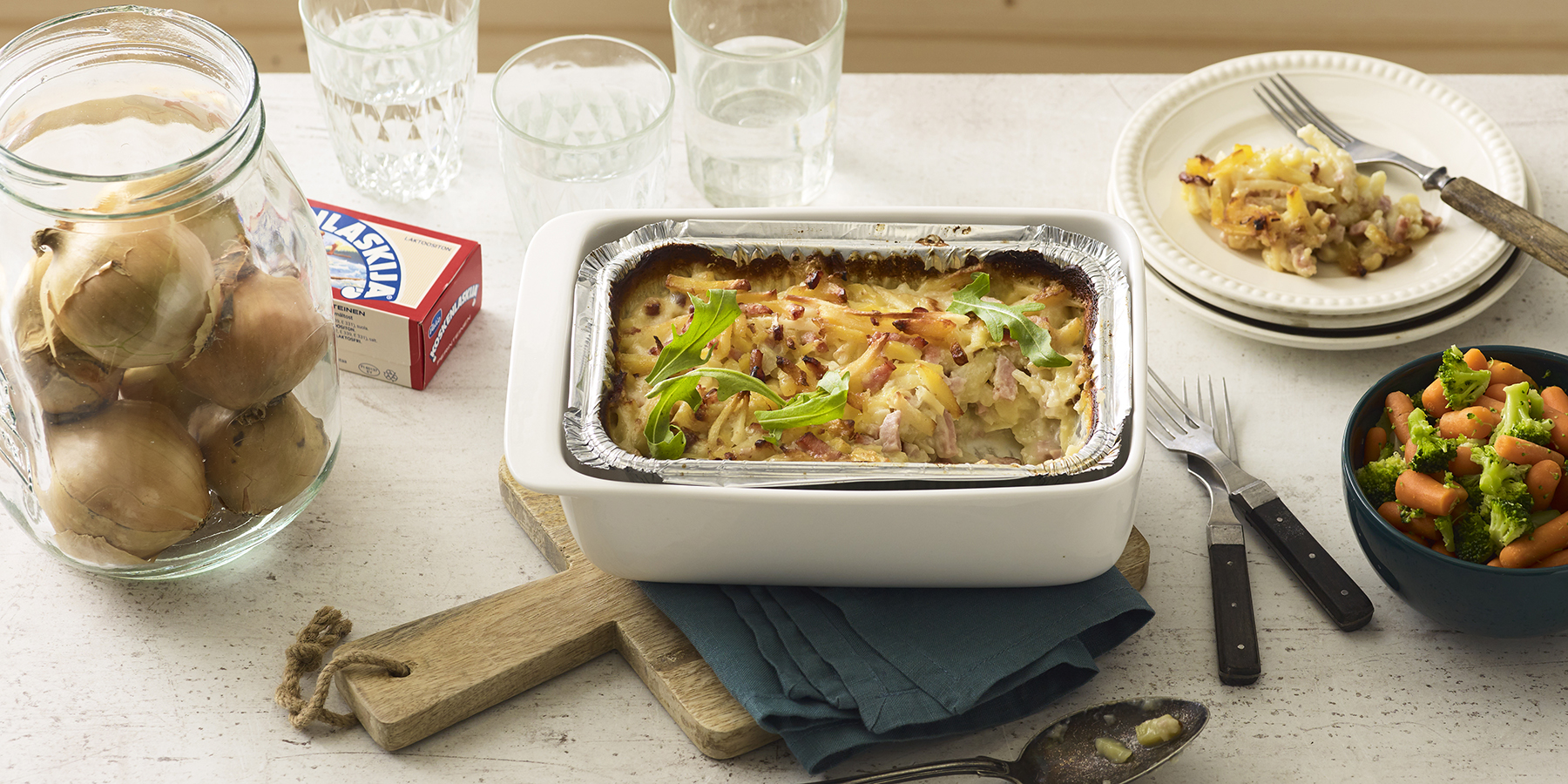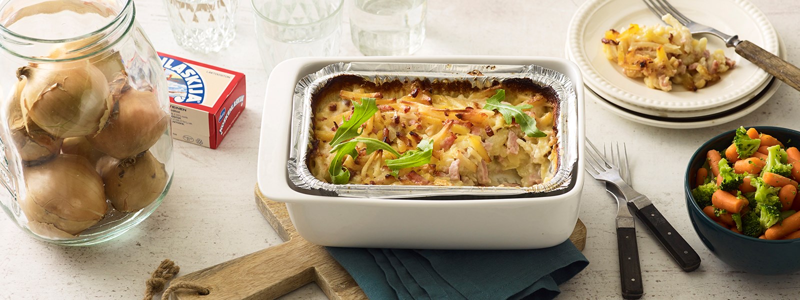 Suikaloidusta perunasta, savustetusta kinkusta ja Valio Koskenlaskijajuustosta valmistettu kiusaus, jonka makuun palsternakka tuo pehmeyttä ja hieman makeutta.