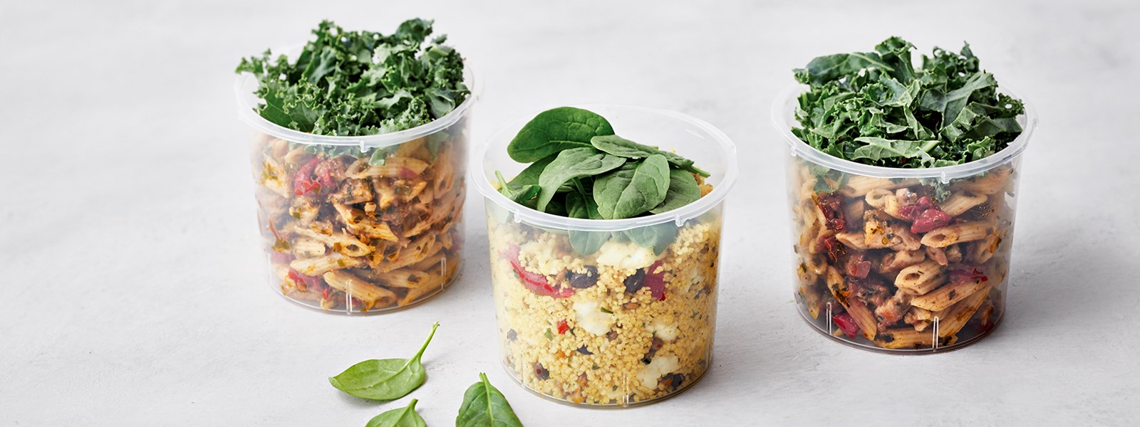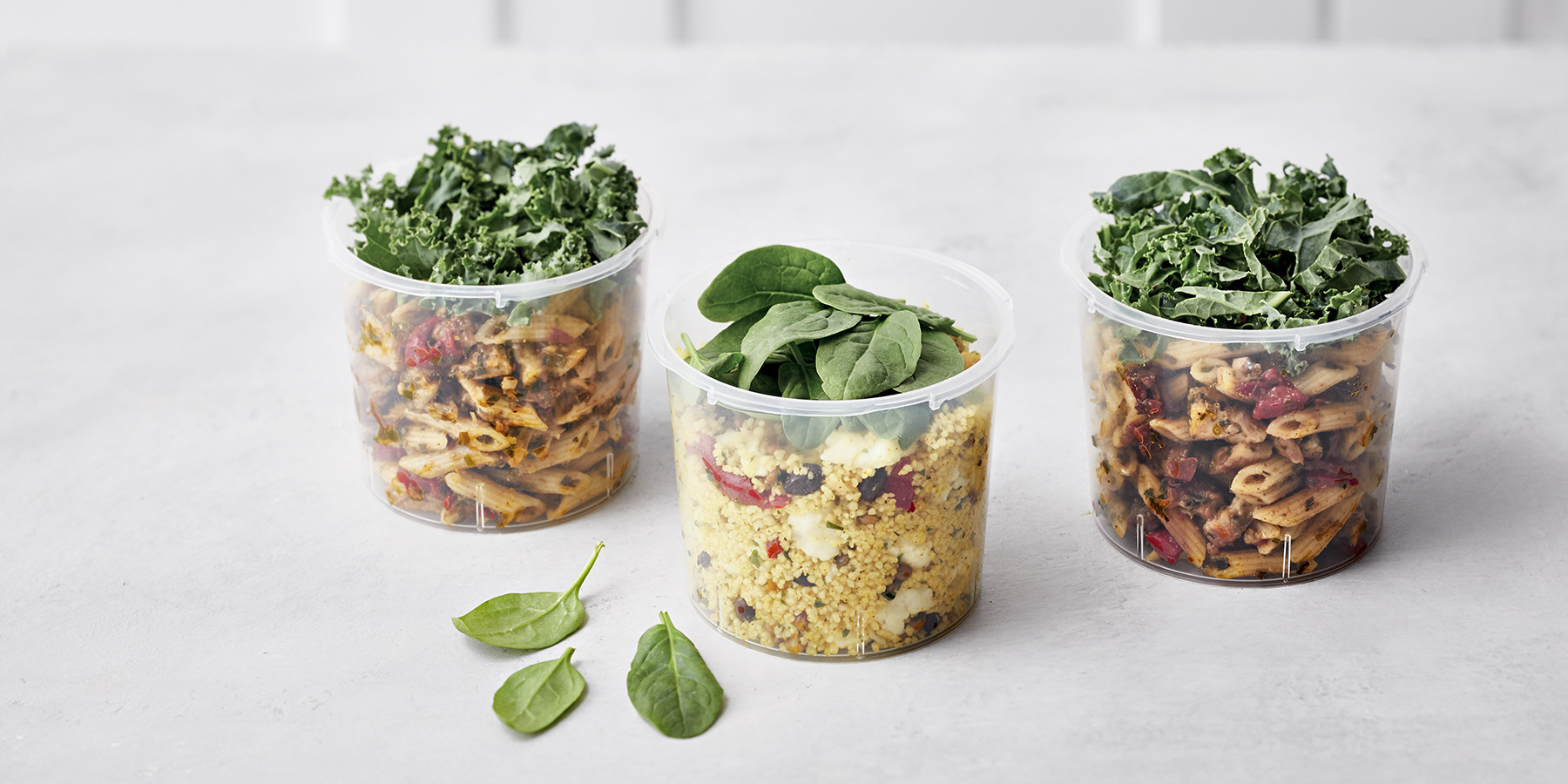 Halloumi & Couscous -ateriasalaatti vie makumatkalle Pohjois-Afrikkaan. Runsaan mausteinen salaatti saa mukavaa pehmeyttä ja makeutta aprikoosista. Kana & Pasta -ateriasalaatti on tuttujen Välimeren alueen yrttien maustama salaatti, jossa makua paahdetulle broilerille tuo lisäksi aurinkokuivattu tomaatti.