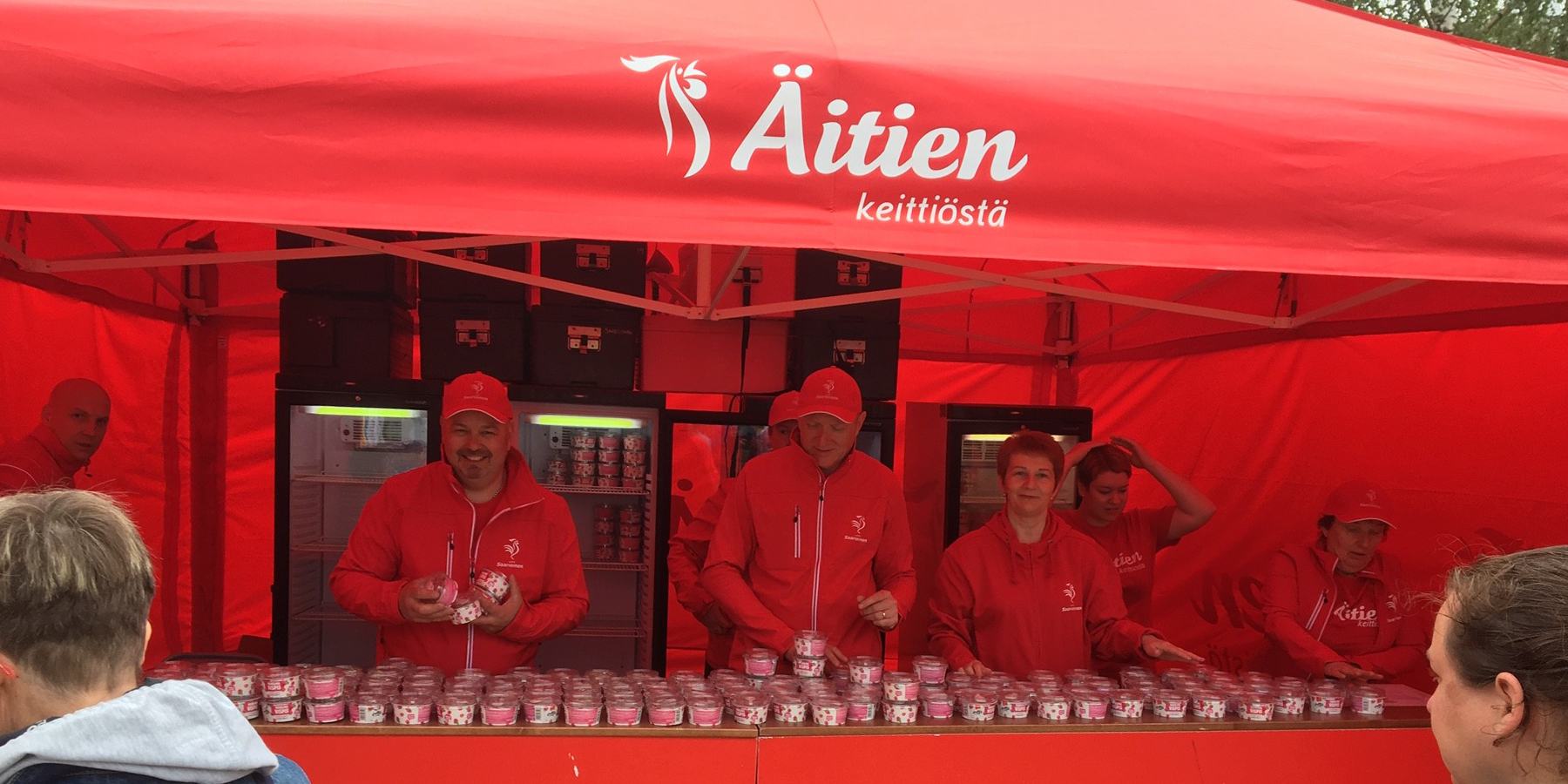 Saarioinen näkyi tapahtumassa myös punaisella Äitien keittiöstä -maistatuspisteellä. Saarioisten Sahalahden tehtaan henkilöstö ja tuotekehityksen väki jakoivat tapahtumassa yhteensä noin 15 000 Eväs Vispistä ja Eväs Tuorepuuroa tapahtumakävijöiden iloksi.