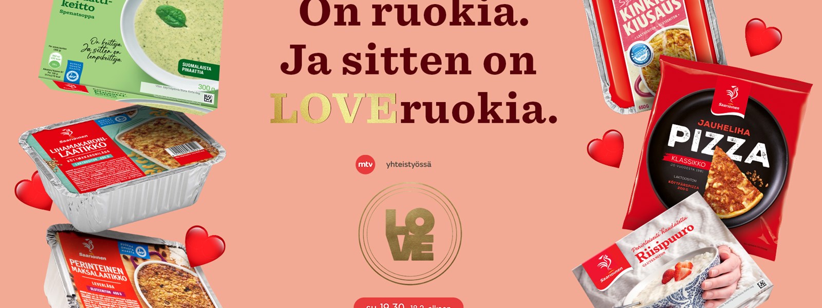 Saarioisten rakastetut klassikot näkyvät LOVE-ohjelman yhteydessä kevään aikana. Ruoan avulla voi välittää rakkautta ja osoittaa toisesta välittämistä, ruoka kokoaa ihmiset yhteen. Saarioisille ruoka ja sen tekeminen on parasta ikinä. Kenen ruokapöytään sinä haluaisit tuoda ripauksen rakkautta?