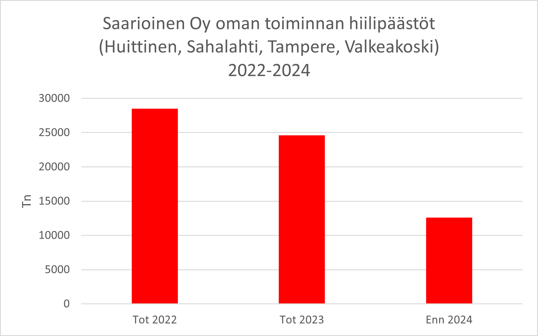 Työ päästöjen alentamiseksi jatkuu: arviomme vuoden 2024 oman toiminnan* hiilipäästöjen kokonaismäärästä on noin 13 000 tn.